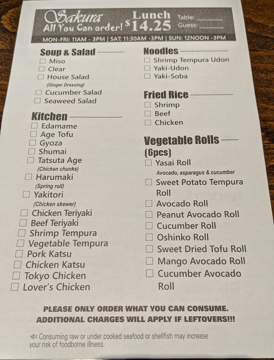 With consistently high service levels and a cozy atmosphere, Sakura Sushi promises a memorable dining experience every visit.