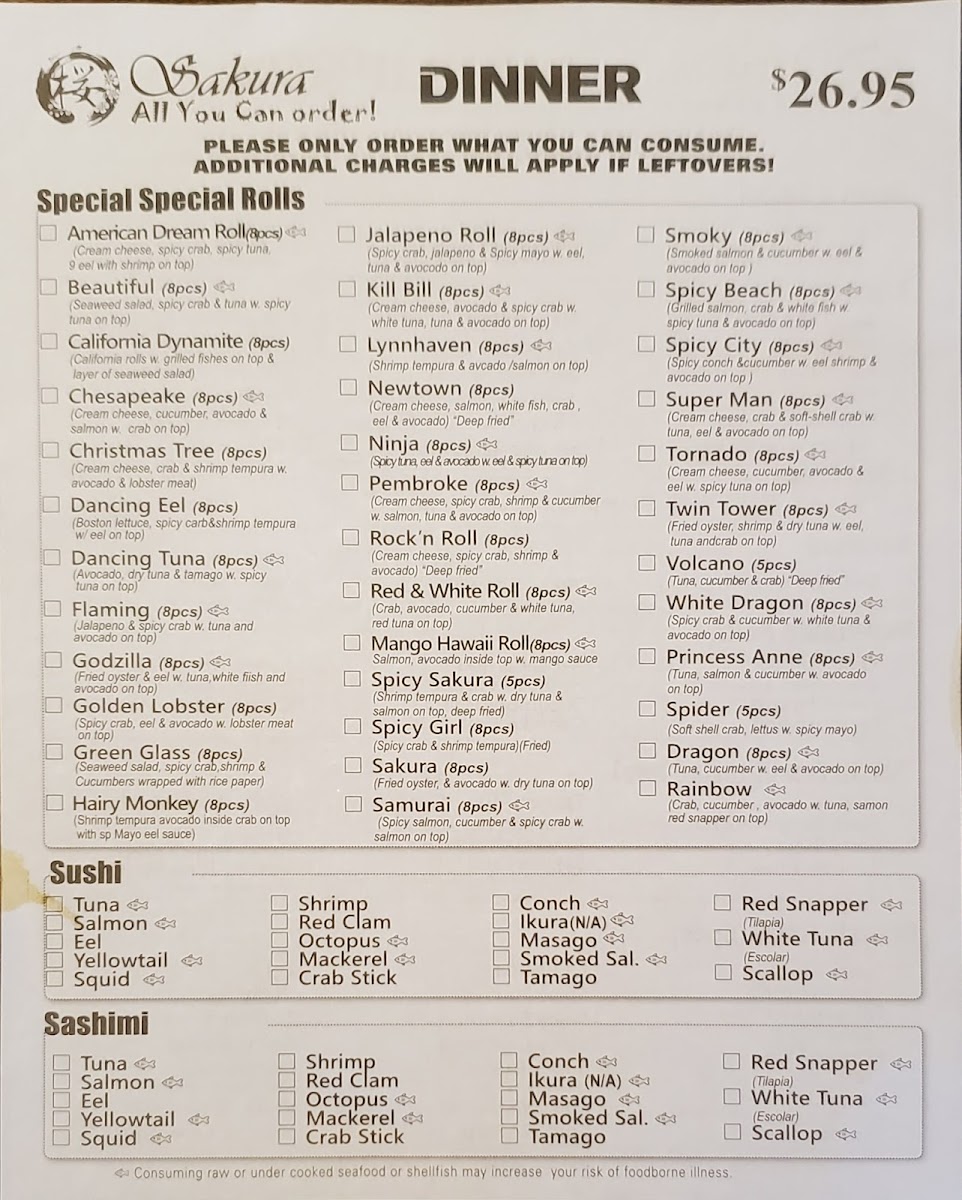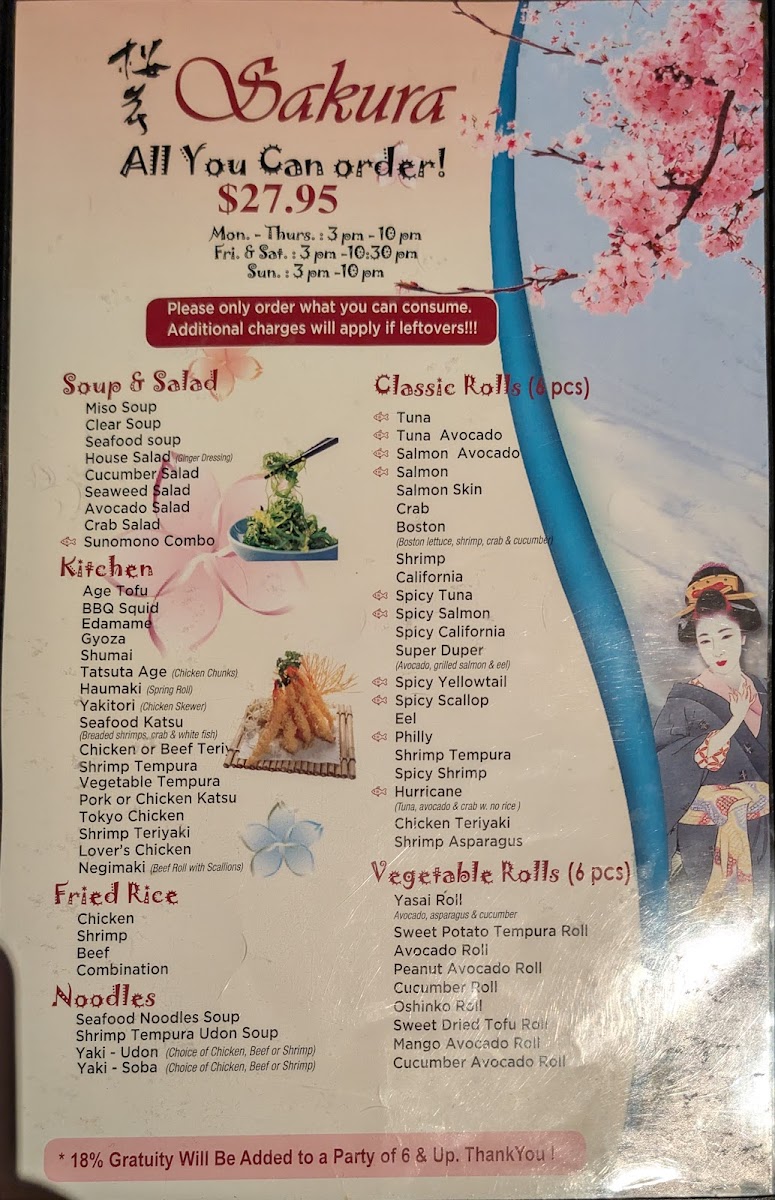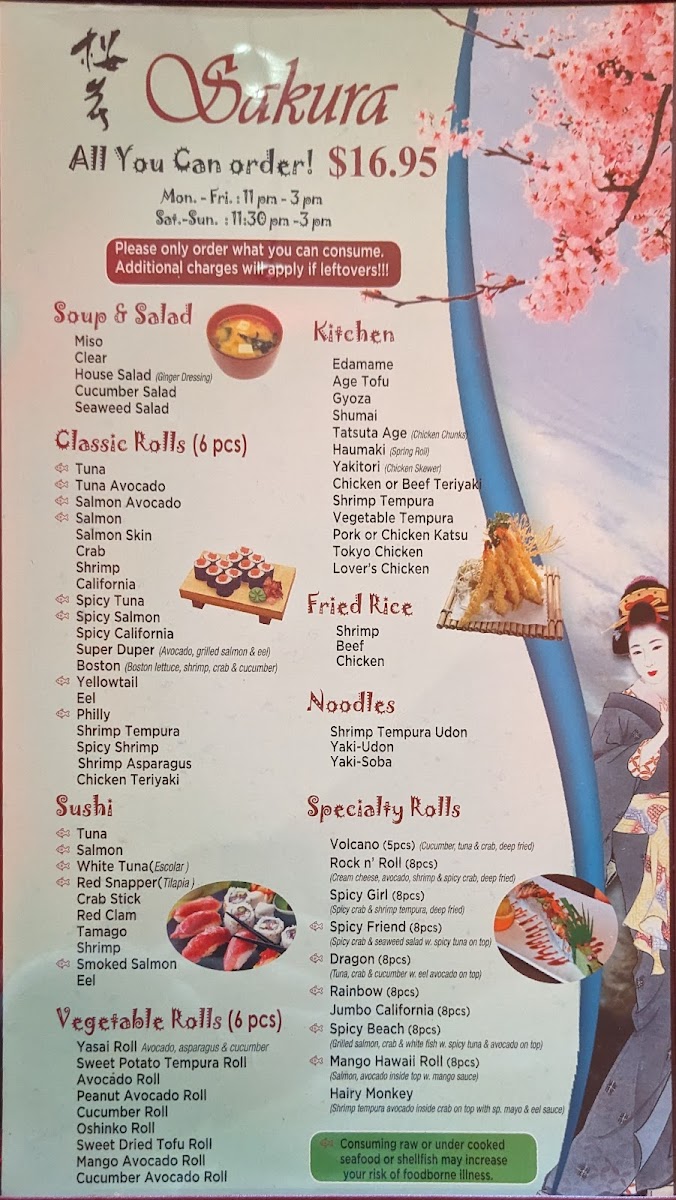 Introducing Sakura Sushi, your premier destination for authentic Japanese cuisine located at 2029 Lynnhaven Pkwy, Virginia Beach. This favorable spot has gained a reputation for its all-you-can-eat sushi, drawing patrons from far and wide. With a diverse menu, sushi enthusiasts can indulge in signature rolls like the Hairy Monkey or the much-praised Green Glass Roll, each crafted with fresh, high-quality ingredients.